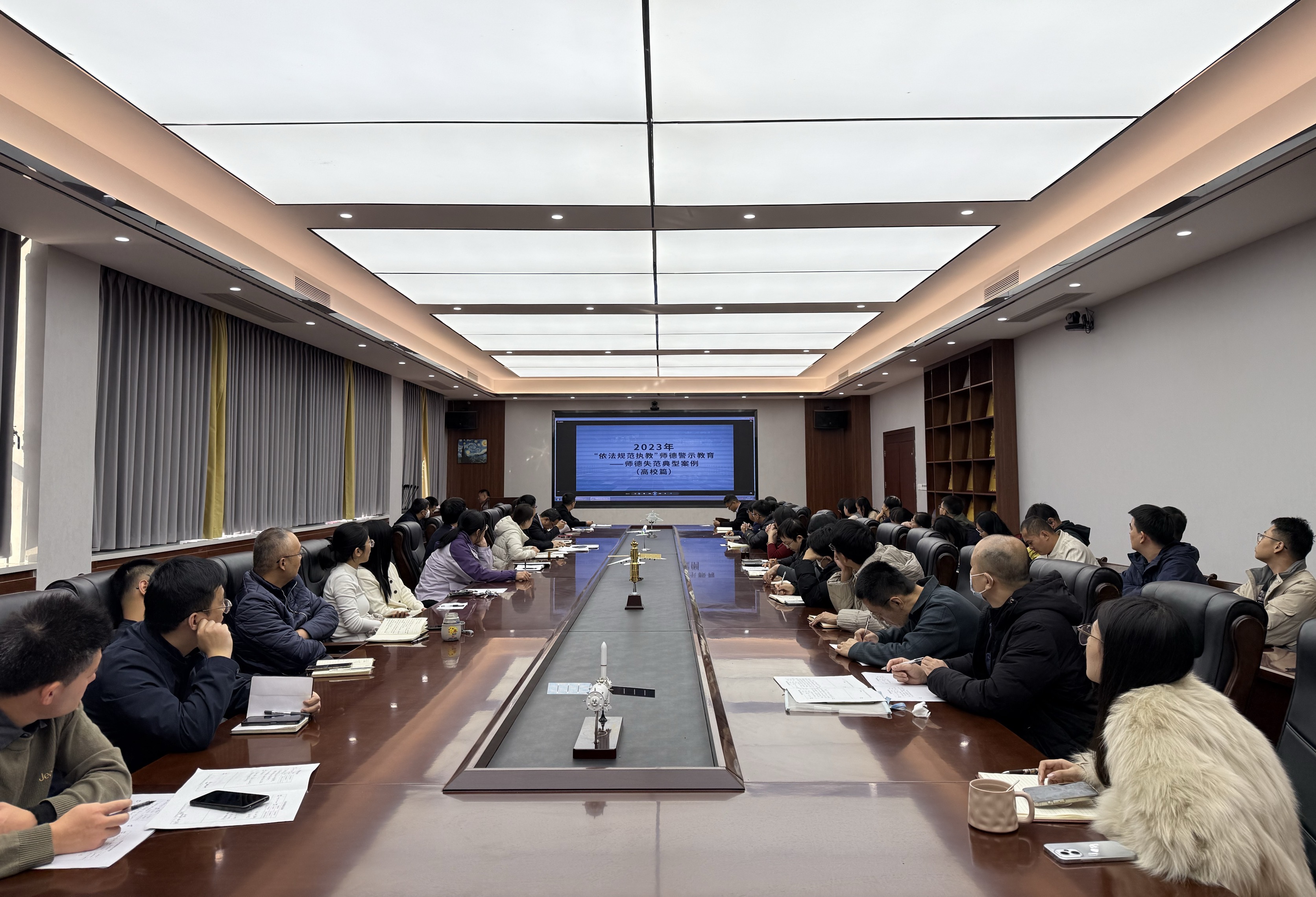 全体与会人员集中收看了教育部公开曝光的违反高校教师职业行为十项准则的典型案例警示教育片。通过剖析这些发生在高等教育领域的真实案例,深刻揭示了师德失范行为的严重危害性,为全体教职工敲响了警钟,引导大家以案为鉴、心有所畏、言有所戒、行有所止,时刻自重、自省、自警、自励