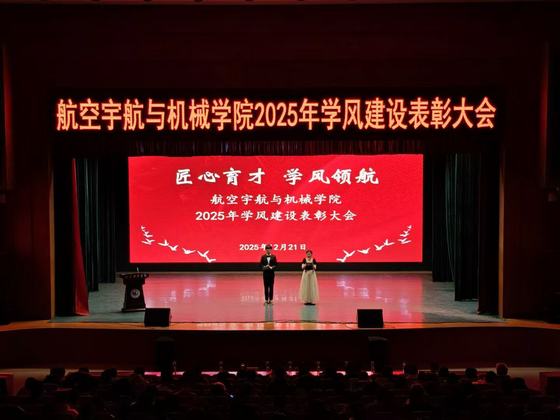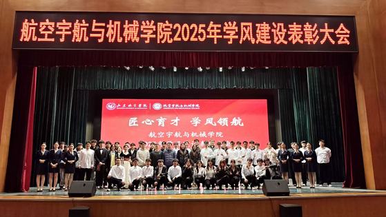 大会在庄严的氛围中拉开帷幕,首先回顾了过去一年学风建设的推进历程与成效,强调优良学风是学院发展的精神底色,更是学子健康成长、全面发展的重要基石。随后,大会宣读表彰决定,对“学风建设先进班集体”“学业标兵”“科研创新先锋”等多个类别共计11个先进集体和95名个人进行表彰,学院领导为获奖代表颁发荣誉证书并合影留念。获奖学生代表先后发言,分享了在课程学习、学科竞赛、科研实践中的经验感悟,生动诠释了航宇学子勤学善思、勇攀高峰的精神风貌,为全体学生树立了可学可及的榜样。 此次学风建设表彰大会既是对学院本年度学风建设成果的系统总结,更是凝聚师生合力、续写育人新篇的重要契机。通过榜样引领与朋辈激励,不仅进一步激发了全体学生的学习热情与进取意识,更夯实了“教学相长、知行合一”的育人根基。未来,学院将持续健全学风建设长效机制,以优良教风引领学风,以浓厚学风涵养院风,为培养更多具备航空航天情怀与机械工程素养的高素质人才筑牢基础,为学院高质量发展注入持久动力。